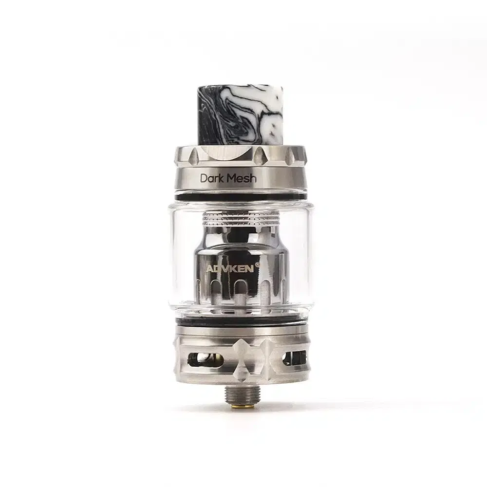 Advken Dark Mesh Sub Ohm Tank 5ml/6ml. Special Design, Pass through the endless darkness JUST for the coming dawn. This tank, with marble pattern resin drip tip and powerful airflow and big capacity, like a gorgeous noble knight. You are the king when you are vaping with a dark mesh tank; your loyal night knight will conquer the world for you.